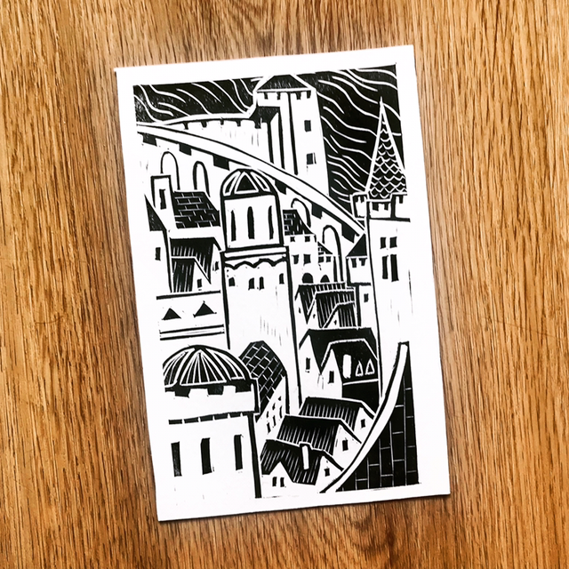 Linogravure 10x15cm a l’encre Charbonnel noire.